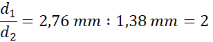 Na koniec podziel średnicę przekroju o polu 6 mm2 przez średnicę przekroju o polu 1,5 mm2.