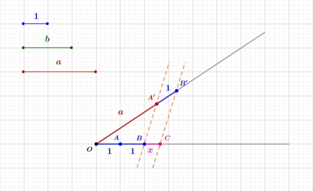 Sporządź odcinki o długościach 1, a, b (a > b), a następnie narysuj odcinek o długości .