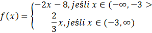 Funkcja składa się z dwóch półprostych, zatem będzie rozbita na dwie funkcje.