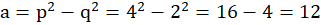 Wybierz dodatnie liczby naturalne p, q takie, że p>q>0 i oblicz a, b i c według wzoru: