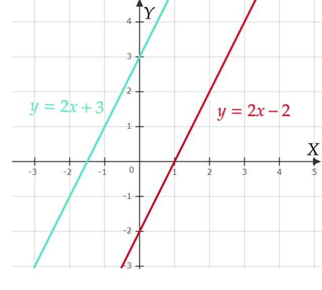 Szukana część płaszczyzny to obszar znajdujący się pomiędzy tymi dwoma prostymi.
