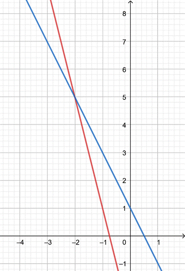 Rozwiąż układ równań metodą podstawiania lub przeciwnych współczynników i narysuj wykresy obu równań układu w jednym układzie współrzędnych.