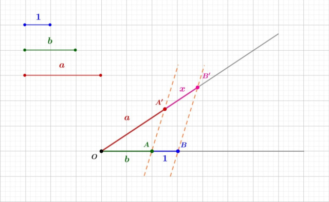 Sporządź odcinki o długościach 1, a, b (a > b), a następnie narysuj odcinek o długości