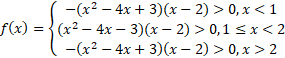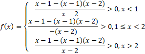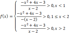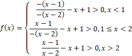 Zadanie zacznij od zapisania dziedziny funkcji. Wyrażenie w mianowniku nie może się zerować. Zauważ, że w tym zadaniu należy rozpatrzeć funkcję w trzech przedziałach. W pierwszym przedziale weź pod uwagę wszystkie wartości x mniejsze od 1, w drugim większe równe 1 i mniejsze od 2, a w trzecim większe od 2.