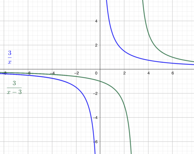 Teraz w tym samym układzie współrzędnych narysuj wykres funkcji g, zauważ że wykres funkcji g jest przesunięciem wykresu funkcji f o 3 jednostki w prawo: