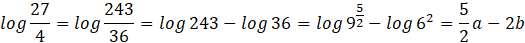 Najpierw zapisz niewiadomą a jako logarytm zgodnie z podanymi danymi. Następnie rozbij liczbę logarytmowaną na iloraz dwóch liczb. Potem, korzystając z wzoru na sumę logarytmów o tych samych podstawach, rozbij wyrażenie na dwa logarytmy. Na koniec podstaw pod odpowiedni logarytm liczbę