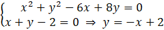 Z równania prostej wyznacz zmienną y, a następnie wstaw dane do równania okręgu.