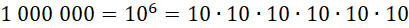 Liczba milion jest szóstą potęgą liczby 10. Zauważ, że każda z dziesiątek składa się z iloczynu 2 i 5. Liczba dwójek i piątek będzie sobie równa, ponieważ każda z dziesiątek wnosi ze sobą do iloczynu po jednej dwójce i jednej piątce.