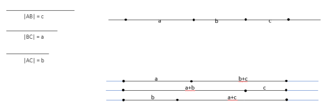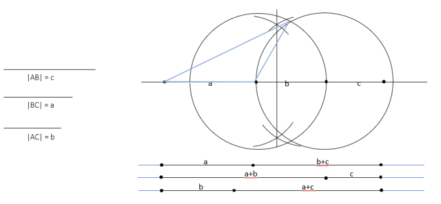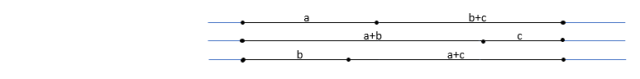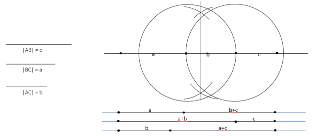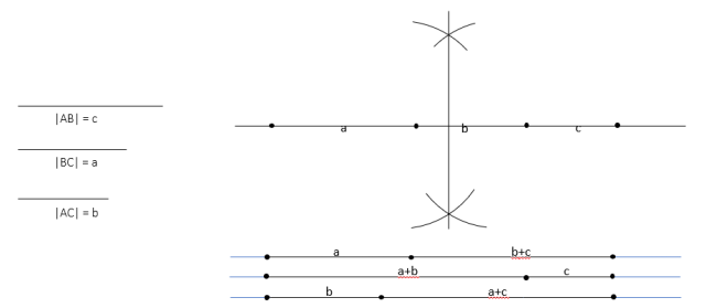 Na jednej prostej odłóż kolejno długości wszystkich trzech odcinków.