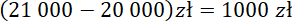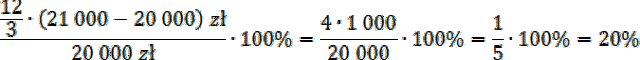 Pan Stanisław otrzymał z banku kredyt w wysokości 20 000 zł. Po upływie trzech miesięcy spłacił kredyt z odsetkami, łącznie wpłacił do banku 21 000 zł.