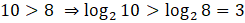 Ponieważ podstawa tego logarytmu jest większa od 1, to nierówności między liczbami logarytmowanymi przechodzą na całe logarytmy. Możesz więc zapisać: