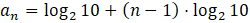 Jest to wzór ogólny ciągu arytmetycznego, gdzie a1 = r = log2 10.