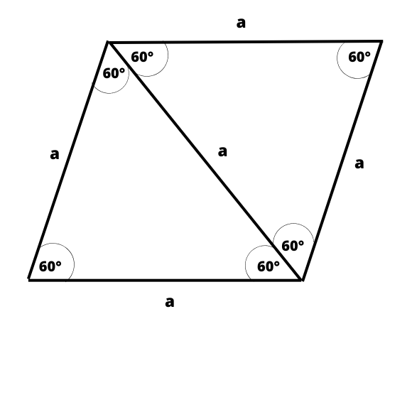 Ten romb złożony jest z dwóch trójkątów równobocznych, więc ma kąty: