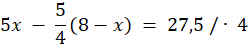 Skoro Marta odpowiedziała dobrze na pytania za 4 punkty, to ma już 40 punktów. W takim razie zostało jej 8 zadań za 5 punktów. Zdobyła z nich 67,5 - 40 = 27,5 punktu. Niech x to będzie liczba pytań, na które dobrze odpowiedziała Marta. W takim razie 8 - x, to pytania, na które Marta odpowiedziała źle. Suma punktów za te pytania to:
