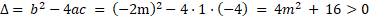 ma dwa różne pierwiastki niezależnie od doboru parametru m.