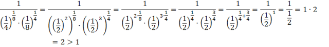 W tym zadaniu musisz skorzystać z praw działania na potęgach: ax ∙ ay = ax + yoraz (ax)y = ax ∙ ydla wymiernych x, y i rzeczywistego a > 0. Na początku zadania musisz zamienić liczby w mianowniku na potęgi o tej samej podstawie (