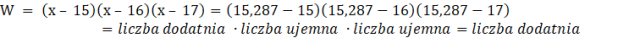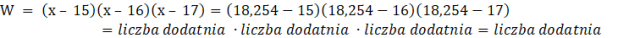 Podano wyrażenie W = (x – 15)(x – 16)(x – 17) oraz liczby:
