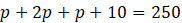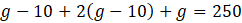 Paweł przygotował do karmnika dla ptaków 250 g mieszanki ziaren pszenicy, słonecznika i gryki. Wymieszano ziarna pszenicy i słonecznika w proporcji 1 : 2, a resztę mieszanki uzupełniono ziarnami gryki, której było o 10 g więcej niż pszenicy. Ile gramów ziaren poszczególnych rodzajów użył Paweł?