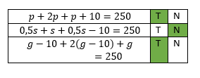 Oceń, czy równania zostały poprawnie ułożone. Wybierz T(tak), jeśli równanie jest poprawnie ułożone, lub N(nie) – jeśli jest błędne.