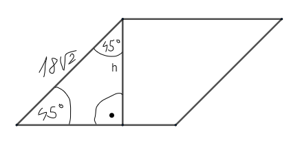 Romb ma bok o długości 18√2 cm, a jeden z jego kątów ostrych ma miarę 45°. Oblicz pole tego rombu.