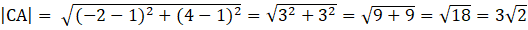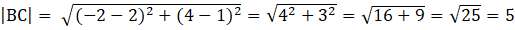 W tym zadaniu musisz wyznaczyć długość najdłuższego boku trójkąta o wierzchołkach A = (–1, 1), B = (2, 1), C = (–2, 4).