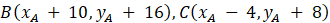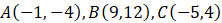 Należy przyjąć drugie rozwiązanie. Podstawiając tę wartość do wcześniej zapisanych współrzędnych punktów A, B i C, mamy