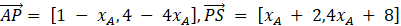 Wektory utworzone przez punkty A i P oraz P i S mają współrzędne