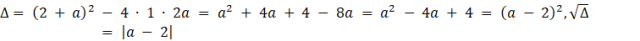 Funkcja f jest nieciągła w punktach a = 0 i a = 2.