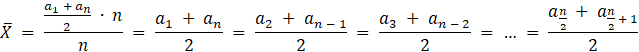 Mediana to wartość środkowa zbioru danych uporządkowanych rosnąco.