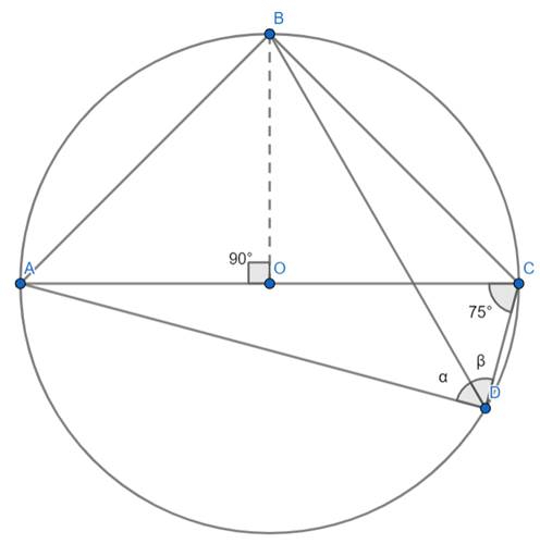 Trójkąt ADC jest prostokątny, ponieważ odcinek AC jest średnicą okręgu opisanego na tym trójkącie: