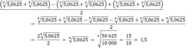 W pierwszym kroku opuść nawiasy i zredukuj wyrażenia podobne. Następnie skróć ułamek przez 2, zamień wyrażenie pod pierwiastkiem na ułamek niewłaściwy i spierwiastkuj górę i dół ułamka.