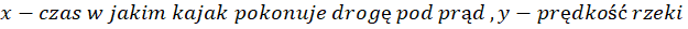 W tym zadaniu musisz obliczyć łączny czas płynięcia kajakarza oraz prędkość rzeki, jeżeli kajakarz z prądem. Rzeki pokonuje 36 km w czasie o 8 godzin krótszym niż wtedy, kiedy płynie pod prąd. Ponadto prędkość kajakarza jest o 3 km/h większa niż prędkość prądu rzeki.