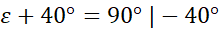 Najpierw wyznacz miarę kąta przy podstawie β trójkąta, wiedząc, że w trójkącie suma katów wewnętrznych jest równa 180°, a kąty podzielone przez wysokość tworzą jeden z nich. Następnie oblicz miarę kąta ε zawartego między wysokościami, wiedząc, że zachodzi ε + 40° = 90°. Dla drugiego z nich zachodzi relacja δ + 30° = 90°.