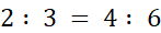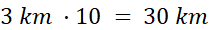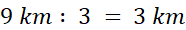 Pierwszy stosunek możemy zapisać jako 4 : 6, a wtedy z łatwością możemy porównać pierwszy stosunek z drugim, aby dowiedzieć się, że 9 km oznacza tyle samo co 3 jednostki stosunku. Stąd wyliczamy długość jednej jednostki, co zamieniamy następnie na długość.