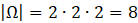 . Zauważ, że trzy razy rzucasz symetryczną monetą, więc za każdym razem możesz dostać jedną z dwóch możliwości.