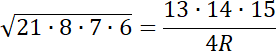 Zauważ, że skoro wszystkie krawędzie boczne mają jednakową długość, to spodek wysokości ostrosłupa jest środkiem okręgu opisanego na podstawie. Skorzystaj ze wzoru na pole trójkąta z promieniem okręgu opisanego oraz połową obwodu i z powstałego równania wyznacz długość R. Na koniec skorzystaj z twierdzenia Pitagorasa w trójkącie AGH i wyznacz długość wysokości ostrosłupa i oblicz jego objętość.
