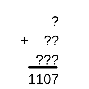 Zacznij od tego, że cyfra setek plus jakaś reszta musi dać 11, jedyną możliwością jest przejście reszty 1 lub 2, bo poprzednio należy dodać dwa pytajniki, a dwie liczby dwucyfrowe mogą dać cyfrę dziesiątek 1, ale jeśli przeszła jakaś liczba wcześniej ze słupka jedności to do słupka setek musiało przejść 2 i cyfrą setek trzeciego składnika musi być 9, bo tylko 9 + 2 = 11. Skoro musi przejść reszta dwa, to cyframi w słupku dziesiątek muszą być 9 i 9, ponieważ z sumy cyfr jedności najwięcej mogło przejść 2 dalej, a właśnie tyle potrzeba, by z sumy cyfr dziesiątek przeszło następne 2 dalej. Skoro, więc cyfry jedności muszą dać 2 dalej i w wyniku jest 7, to muszą to być trzy dziewiątki, bo tylko suma trzech dziewiątek może dać 27.