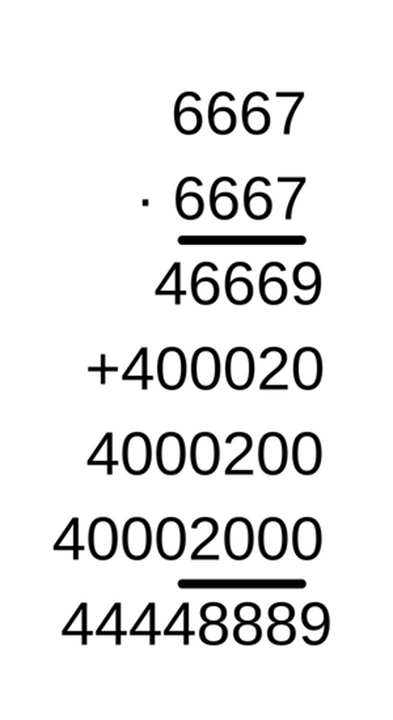 6667 · 6667 = 44 448 889