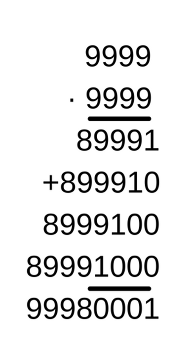 9999 · 9999 = 99 980 001