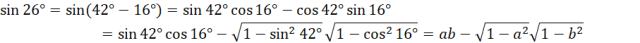 W tym zadaniu musisz zapisać sinus 26° za pomocą a = sin 42° i b= cos 16°.