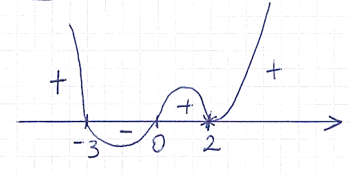 Określamy przedziały dodatnie i ujemne funkcji na osi liczbowej: