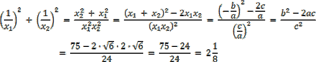 ma dwa miejsca zerowe i bez obliczania tych miejsc zerowych obliczyć sumę kwadratów ich odwrotności.