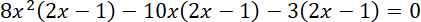 Pogrupuj wyrazy, wyłącz wspólny czynnik przed nawias, aby uzyskać postać iloczynową równania, i wyznacz rozwiązania tego równania.