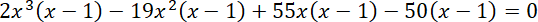 Pogrupuj wyrazy, wyłącz wspólny czynnik przed nawias, aby uzyskać postać iloczynową równania, i wyznacz rozwiązania tego równania.
