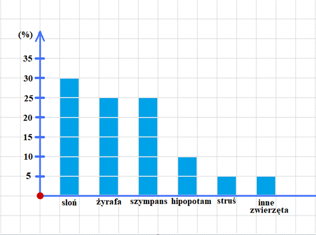 Narysuj dwie osie diagramu. Zaznacz wartości w procentach na osi pionowej. Zaznacz i podpisz słupki odpowiedniej wysokości na osi poziomej.