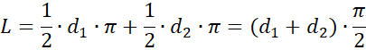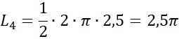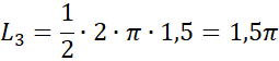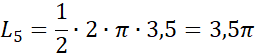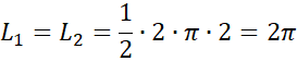 pamiętając, że długość półkola jest dwa razy mniejsza od długości okręgu o tym samym promieniu.