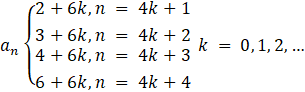 są wszystkie liczby naturalne dodatnie, uporządkowane rosnąco i podzielne przez 2 lub przez 3.W tym zadaniu należy podać wartość