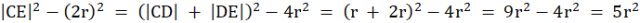 W tym zadaniu oblicz potęgę punktu C względem okręgu o środku E, wiedząc, że środki okręgów narysowanych obok leżą na jednej prostej, a punkty A, D, G to punkty styczności odpowiednich okręgów.