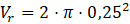 Aby obliczyć masę papieru na rolce musisz najpierw obliczyć jego objętość. Średnica całej rolki wynosi 50 cm. Zauważ, że gęstość, która będzie potrzebna później, jest podana w m3/kg, więc łatwiej będzie, jak objętość obliczysz w m3. W tym celu zamień średnicę rolki na metry. Czyli średnica ta wynosi 0,5m. Promień to połowa średnicy, więc w tym przypadku wynosi 0,25 m. Korzystając ze wzoru na objętość walca możesz obliczyć objętość całej rolki: