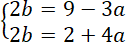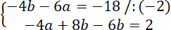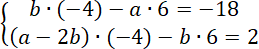 Wstaw parę liczb (-4, 6) do układu równań i wylicz wartości liczb a i b.
